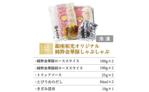 豚肉 しゃぶしゃぶ セット 400g タレ付き 金華豚 銀座和光オリジナル ロース 肩ロース ローススライス 幻の豚 純粋金華豚 トリュフ オイル とびうお だし 昆布 ブランド豚 銘柄豚 ブランド 最高級 高級 冷凍 おすすめ ギフト 贈答 贈り物 平田牧場 山形 酒田 SF0213