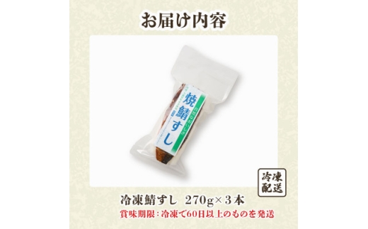 「冷凍」自然なおいしさ焼鯖すし 3本 ギフトやお中元にぴったりの焼き鯖寿司 京都丹後産コシヒカリ使用【1649866】