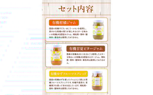 有機 ジャム スプレッド セット 有機柑橘ジャム 有機甘夏ビタージャム 有機ゆずフルーツスプレッド 260g × 各2本 計6本 有機JAS 認証 光食品 株式会社《30日以内に出荷予定(土日祝除く)》徳島県 上板町 フルーツ 国産 すだち レモン 甘夏 ゆず パン 送料無料 st-p