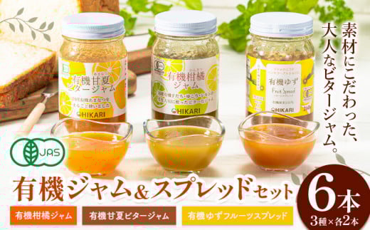 - 有機 ジャム スプレッド セット 有機柑橘ジャム 有機甘夏ビタージャム 有機ゆずフルーツスプレッド 260g × 各2本 計6本 有機JAS 認証 光食品 株式会社《30日以内に出荷予定(土日祝除く)》徳島県 上板町 フルーツ 国産 すだち レモン 甘夏 ゆず パン 送料無料 st-p