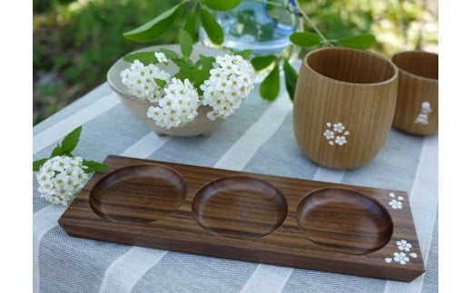 - 【貝象嵌】おちょコップロングとおつまみトレーセット 贈り物 プレゼント 天然素材 夢工房 岩手県 北上市 J0155