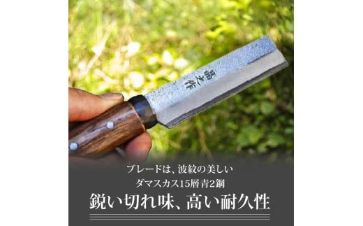 - 竹細工鉈 90 両刃 ダマスカス15層青2鋼 | ナイフ キャンプ アウトドア 打刃物 土佐 鉈 剣鉈 なた 職人 山林 狩猟 熊 刃物 薪割り ハンドメイド 釣り 伝統 工芸 高知県 南国市