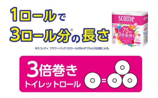 - 《3ヶ月ごとに4回お届け》定期便 スコッティ フラワーパック 3倍長持ち 4ロール(ダブル)×1パック 秋田市オリジナル 最短翌日発送