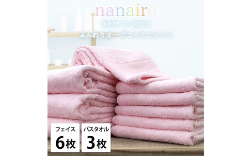 【フェイス6枚・バス3枚】しなやかオーガニックコットンタオルセット(ナナイロ)F6B3-PI