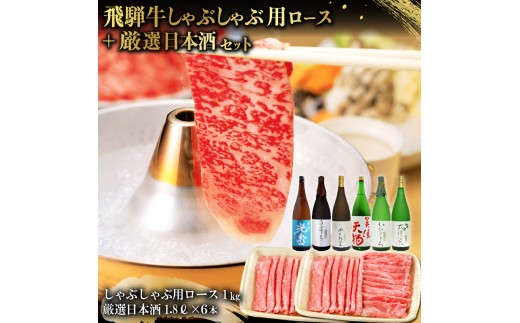 10-3 飛騨牛 しゃぶしゃぶ用ロース1㎏(500g×2) + 厳選日本酒1.8L×6本【岐阜県 可児市 酒 日本酒 飲料 地酒 アルコール 手作り ギフト プレゼント お祝い 肉 牛肉 】