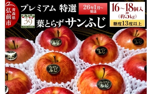 【26年1月~発送】りんご 【 数量限定 】糖度13度以上 「特選」プレミアム 葉とらずサンふじ 約 5kg 16~18個