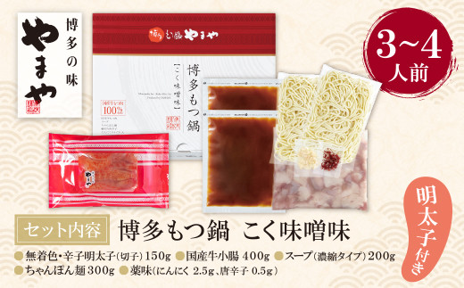 W82-58 やまや 明太子付き・博多もつ鍋(こく味噌味)3~4人前