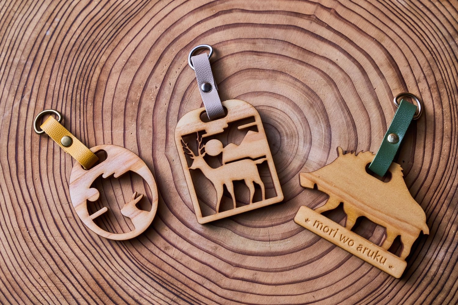 - ゆすはらヒノキの森林の動物キーホルダー3点セット木工 工芸品