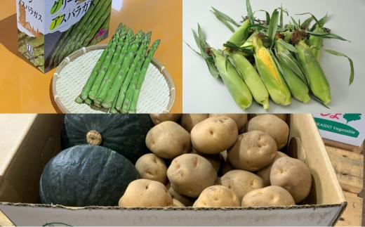 - 【先行予約】野菜 定期便 A 3回便 <令和8年産 > セット 詰め合わせ サスケの家 グリーンアスパラ2kg(L~2L)、スイートコーン12本(1品種)、秋野菜(かぼちゃ1~2個・じゃがいも 約10kg)[048-20]