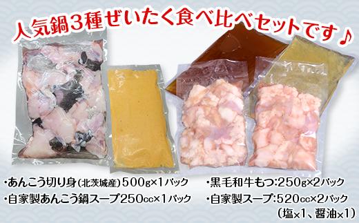 あんこう鍋 500g & もつ鍋 500g 人気 鍋 食べ比べ 海鮮 黒毛和牛 贅沢 お楽しみ セット 便利 真空パック 小分け【 アンコウ 鮟鱇 鍋セット スープ 海鮮 魚介 魚 人気 おすすめ 茨城県 】[SZR]