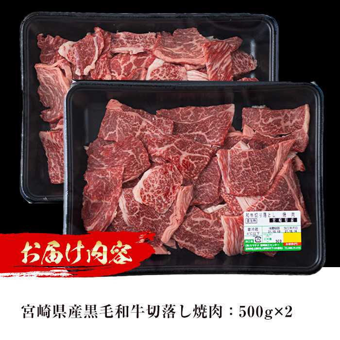 宮崎県産 黒毛和牛 切落し 焼肉(計1kg・500g×2)国産 宮崎県産 黒毛和牛 牛肉 炒め物 和牛 切り落とし【MI019】【(株)ミヤチク宮崎加工センター】