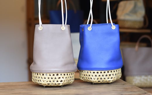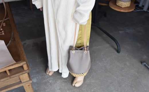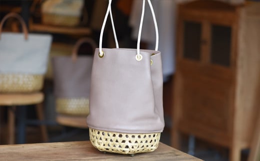 - 竹と牛革の巾着カゴバッグ ピンクベージュ|栃木県 益子町 ふるさと納税 日用品 バッグ 伝統品 カゴバッグ 巾着(BB003-2-1)