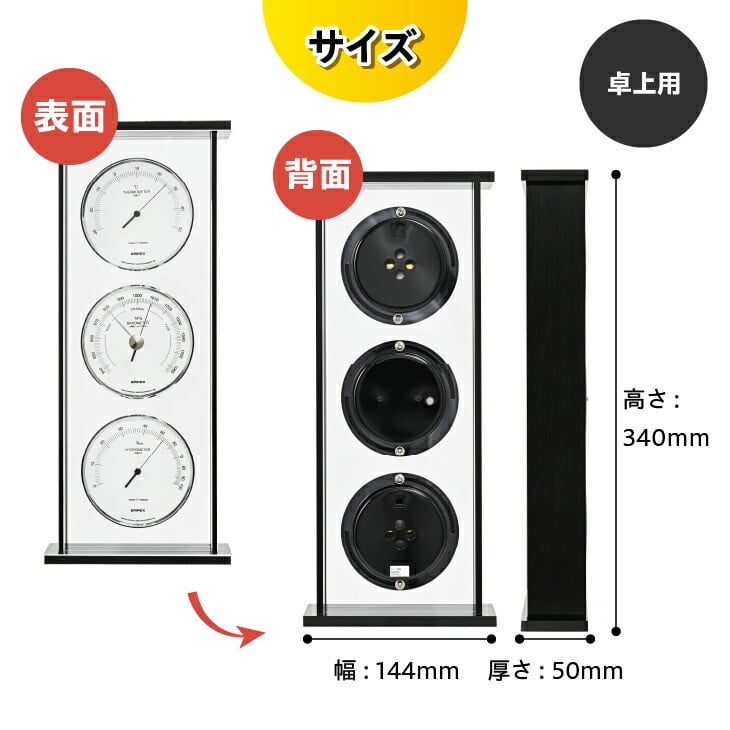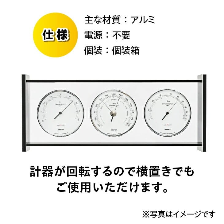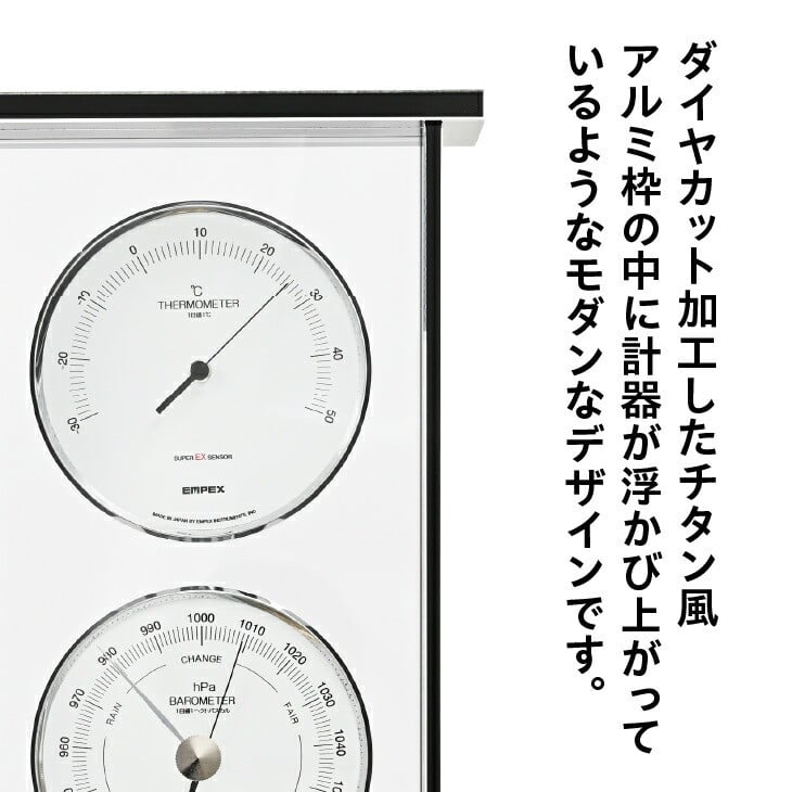 - 【10月1日より価格改定】 スーパーEXギャラリー気象計 EX-796 みずさわ気象計器 温度計 湿度計 気圧計 健康管理 気象病対策 気象観測 モダン インテリア 縦置き 横置き 卓上用 ダイヤカット加工 チタン風アルミ枠 アナログ式 電池不要 [AJ068]