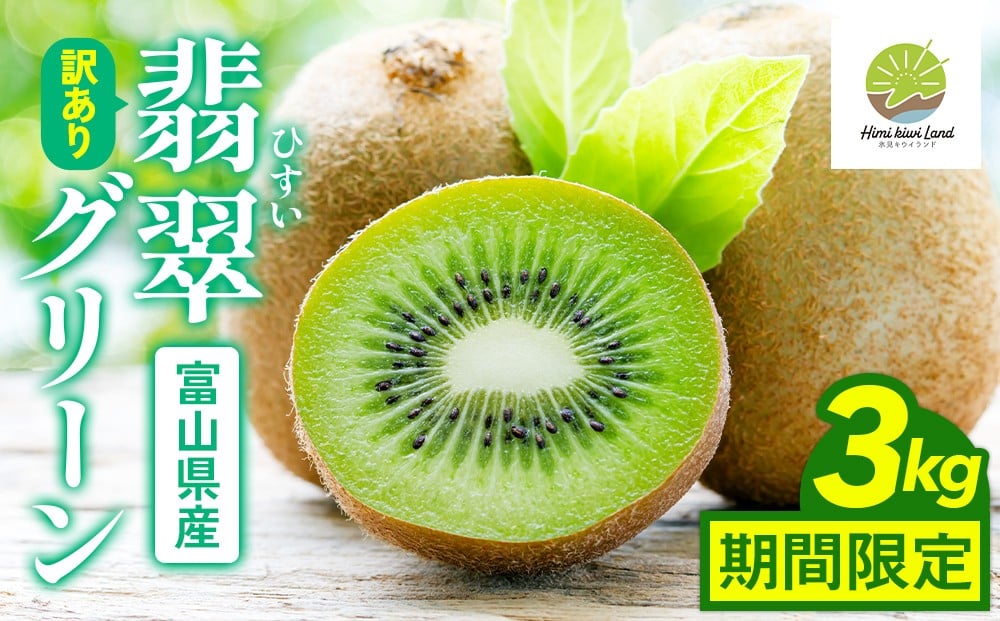 訳あり翡翠グリーン3kg(小玉、擦り傷、日焼け) 数量限定 希少 国産 甘い 氷見キウイランド 富山県 氷見市