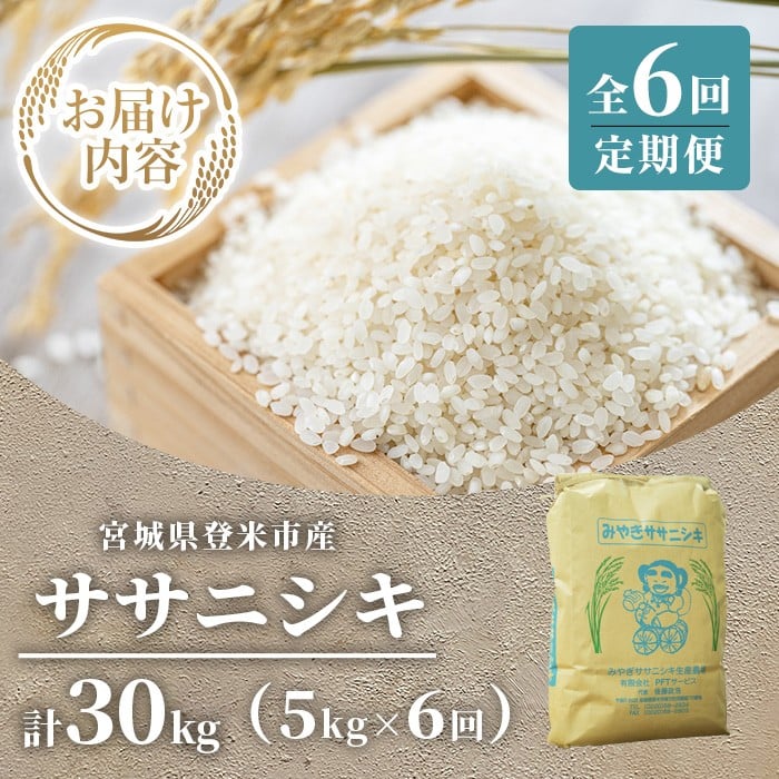 - ≪6ヶ月定期便≫ 登米市産 ササニシキ 30kg (5kg×6回) お米 おこめ 米 コメ 白米 ご飯 ごはん おにぎり お弁当 頒布会【有限会社PFTサービス】tm478