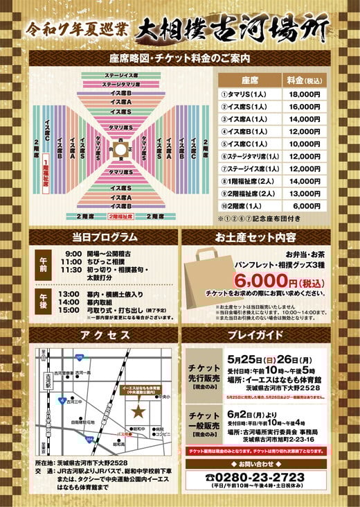 令和7年夏巡業 大相撲古河場所 1階タマリS 1席 8/7開催 ※2025年6月下旬頃までに発送いたします | 相撲 地方巡業 観戦 すもう スモウ たまり タマリ 茨城県 古河市 _DP81