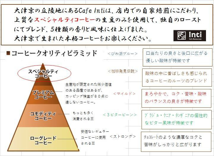 - Cafe Restaurant Inti 自家焙煎コーヒー 大津京セレクト(焙煎豆)100g×5種類