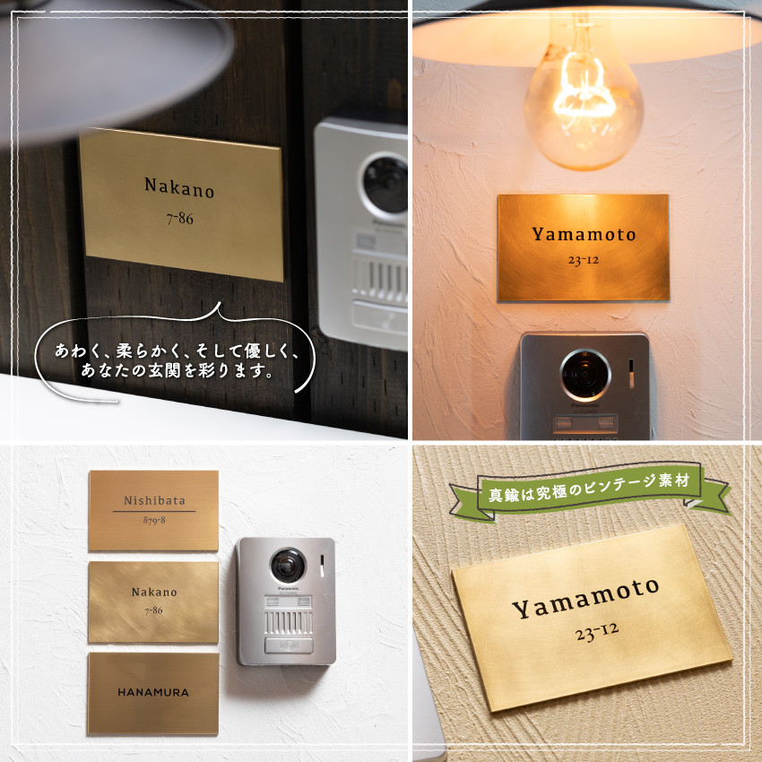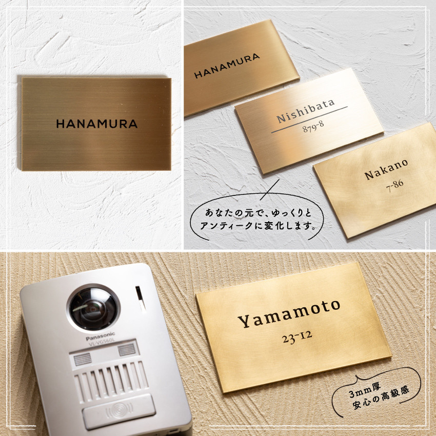 - 真鍮 極厚ゴージャスプレート表札004(8.2×13.2cm×3㎜)〈玄関 プレート オーダーメイド 名前 ハンドメイド 戸建 マンション アンティーク 新築 引っ越し〉 S3801改