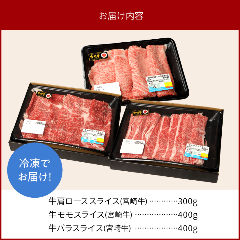 - 宮崎牛肩ローススライス300g モモスライス400g バラスライス400g 計1.1kg N0147-YC235