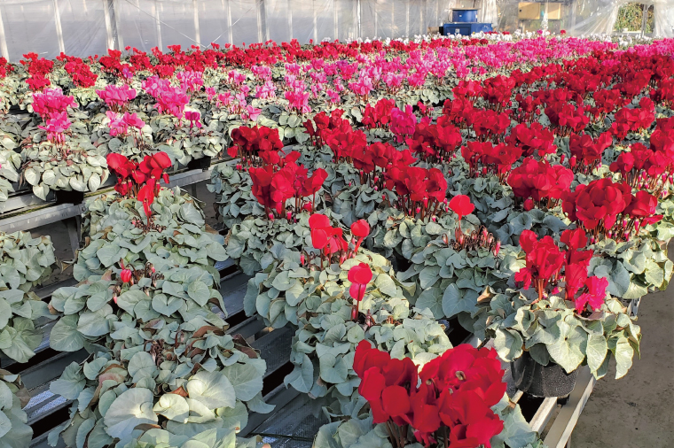 - 【先行予約】【長谷川園芸】オリジナル品種 シクラメン プラチナリーフ 5寸 バイオレット【冬のギフト フラワーギフト クリスマス 鉢花】 (AT104)