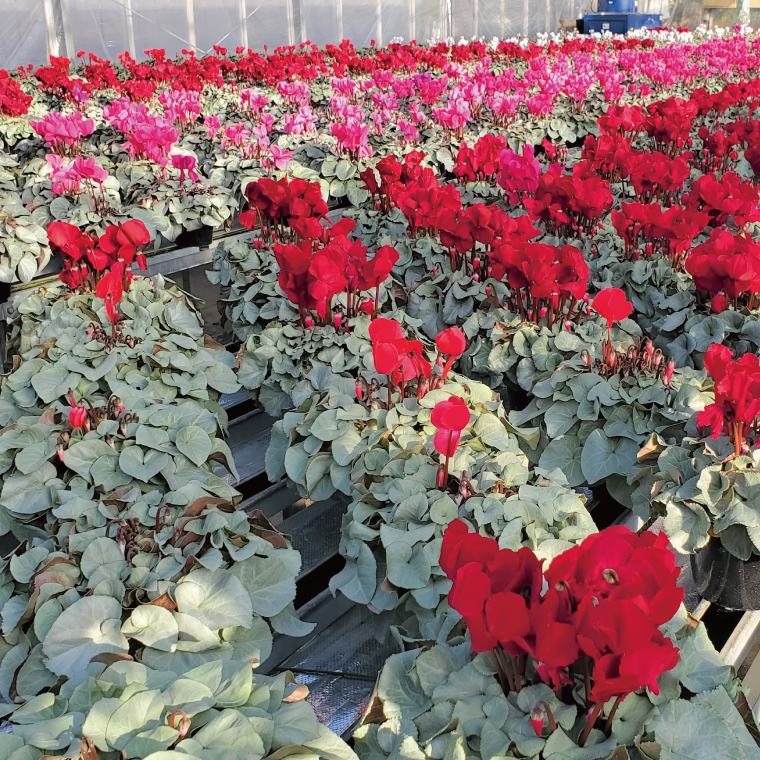 - 【先行予約】【長谷川園芸】オリジナル品種 シクラメン プラチナリーフ 6寸 ホワイト ※12月出荷【冬のギフト フラワーギフト クリスマス 鉢花】(AT106)
