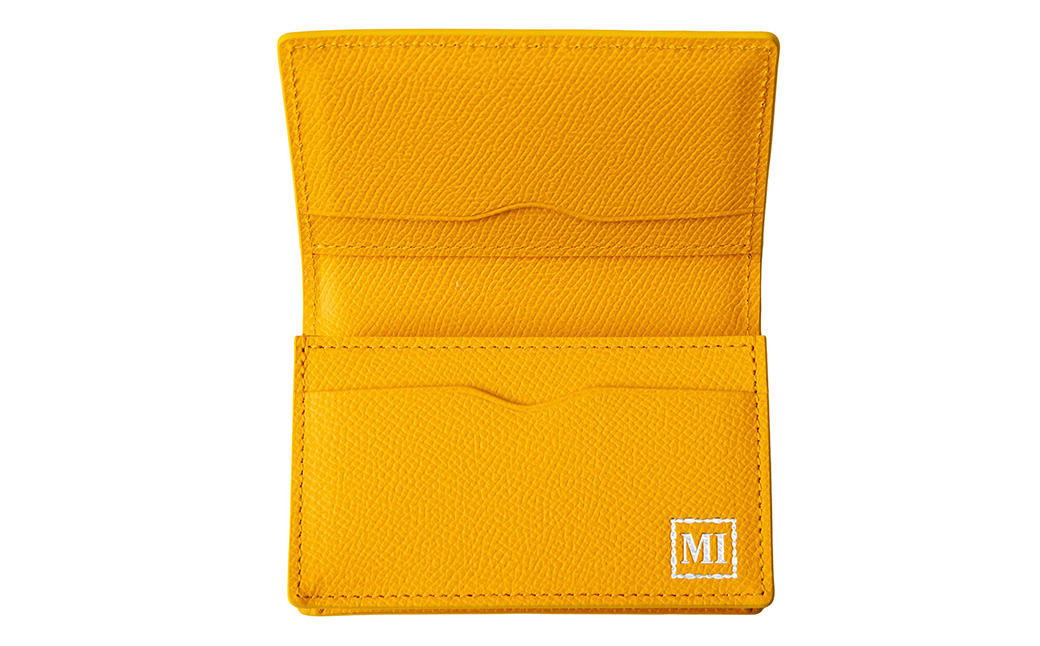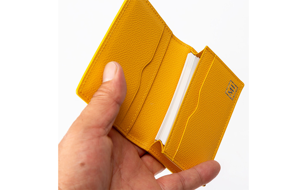 豊岡財布 本革名刺入れ 角シボ型押しカーフ イエロー WMS01NC / 名刺入れ 名刺ケース マチあり メンズ レディース 本革 革 牛革 革小物 シンプル デザイン 無地 マスミ鞄嚢