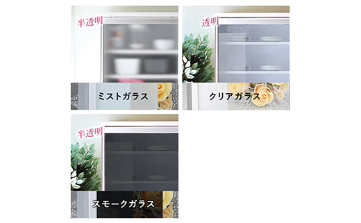 【開梱設置】引き戸 食器棚 ダイニングボード ポエム 幅113.5 (ミスト・クリア・スモークガラス)ホワイト キッチン収納 家具