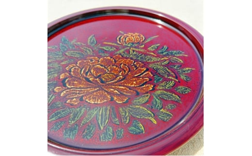 - <香川漆器>36cm丸盆 掻取文ぼたん後藤塗(木箱入)【1620854】