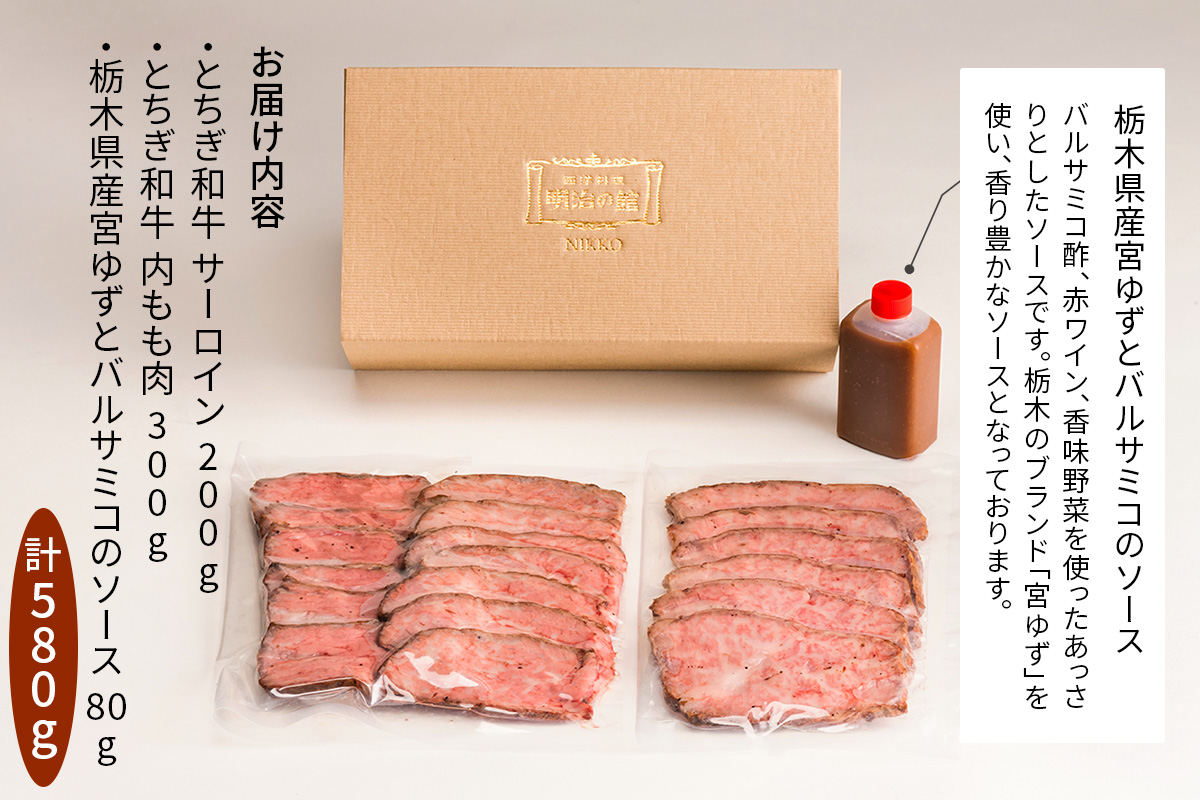 とちぎ和牛のローストビーフ 明治の館 極上の逸品|和牛 国産牛 牛肉 サーロイン ビーフ 特製ソース バルサミコ ゆず 洋食 オードブル レストラン ギフト 記念日 誕生日 国産 日光市 [0743]