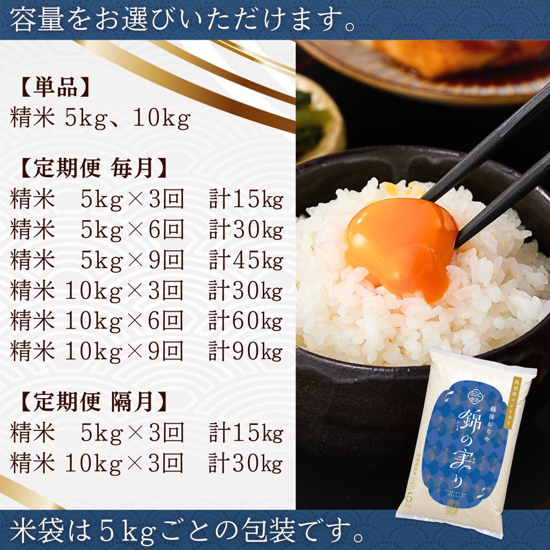 令和7年産 魚沼産コシヒカリ 定期便 小千谷市ブランド認証米「錦の実り」Aランク 精米30kg (5kg×毎月全6回)【0002-OBa05DB00-02】