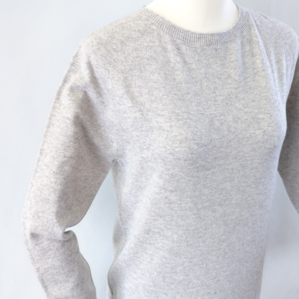 カシミヤレディースセーター立体袖プルオーバー Lサイズ(ライトグレー)