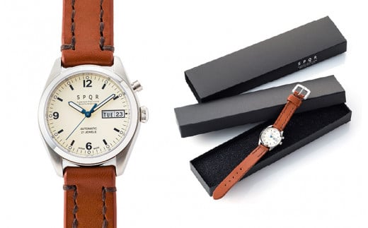 SPQR Ventuno dd(アイボリー) 機械式【バンド】 レザー(グリーン)【腕時計 時計 ブランド SPQR スポール メンズ レディース 男女兼用 ギフト プレゼント 贈り物 アイボリー 自動巻 機械式 バンド9種 ステンレス】