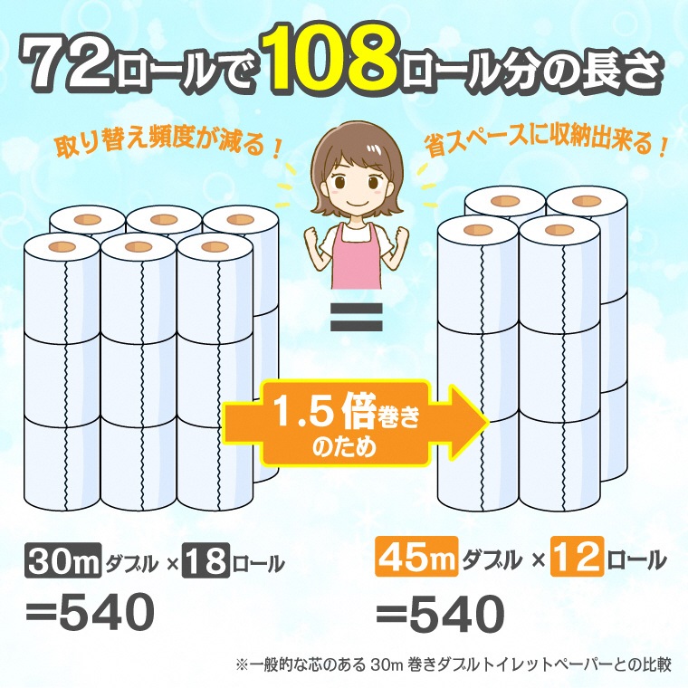 - トイレットペーパー エコロジーパルナップ 1.5倍巻 ダブル 12R×6P 無香料 [sf002-270]