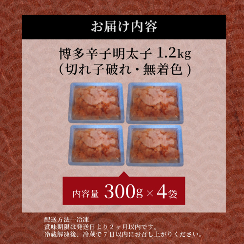 - 博多辛子明太子1200g(切れ子破れ・無着色)(300g×4P)【小分けで便利!計1200g!】