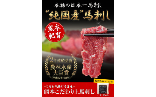 - 馬刺し 上赤身 ブロック 国産 熊本肥育 冷凍 生食用 たれ付き(10ml×3袋) 100g×3セット 肉 期間限定 絶品 牛肉よりヘルシー 馬肉 予約 平成27年28年 農林水産大臣賞受賞 熊本県玉東町《90日以内に出荷予定(土日祝除く)》送料無料 訳あり 定期便 でない