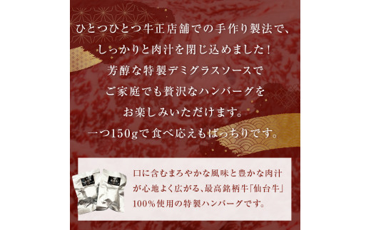 - 仙台牛 ハンバーグ 仙台牛ハンバーグ 150g × 5個 冷凍 個包装 デミグラス ソース レトルト 惣菜 おかず 夜ごはん 湯煎 レンジ 簡単料理 時短調理 ブランド 肉 国産牛 和牛 牛肉 美味しい 温めるだけ 贈り物 ギフト 誕生日 内祝い 送料無料 牛正 宮城県 石巻市