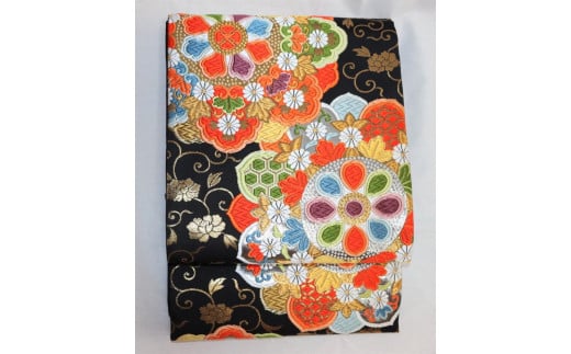 - 【山口成織物】西陣織 黒地 袋帯 牡丹唐草地大華文【お仕立付き】