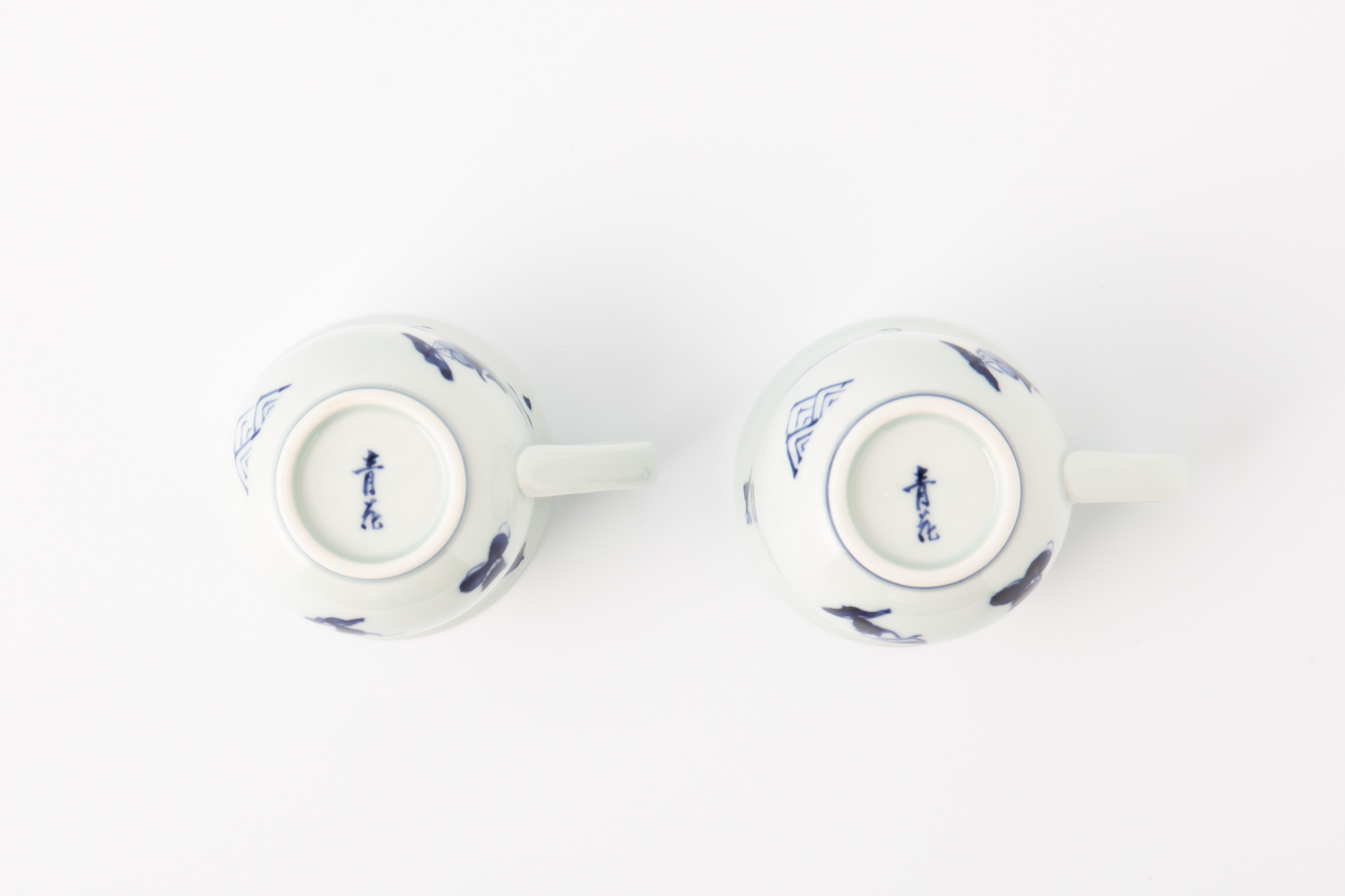 - 有田焼 青花 異人づくし 反マグカップ 2個セット ヤマト陶磁器