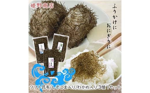 ソフト昆布詰め合わせ三種(プレーン、コクウマ、ワカメ入り) 海藻 乾物 海産物 とろろ 昆布 簡単調理 トッピング FAD-1461