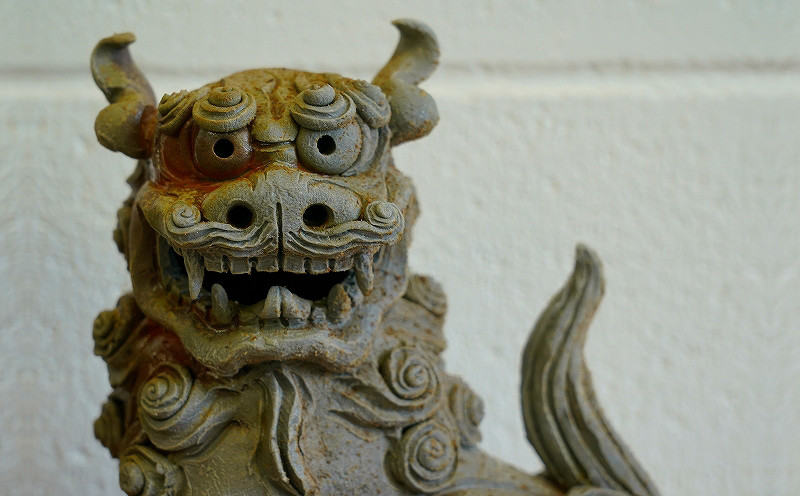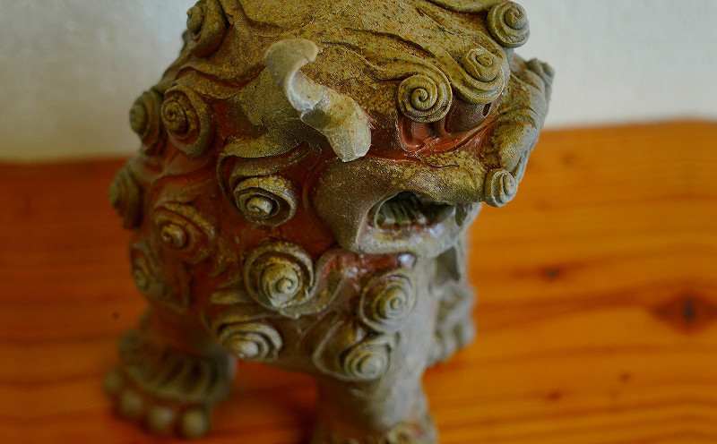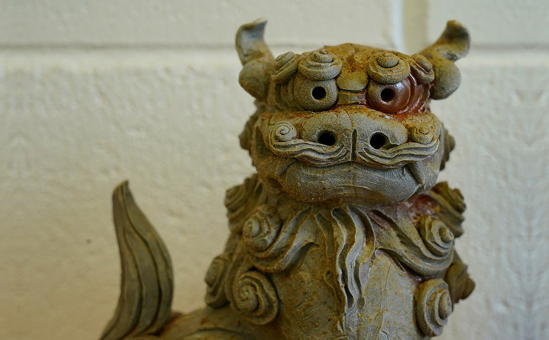 - 【やがじ荒焼】限定数1点 灰被り窯変シーサー(白土)