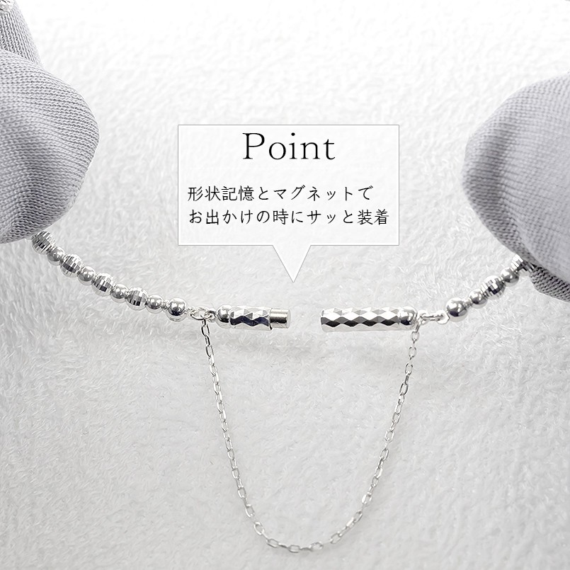 18金 ブレスレット k18 レディース ゴールド 形状記憶 簡単着脱 バングル キラキラ ホワイトゴールドK18 K18 マグネット セーフティチェーン付き ジュエリー シンプル 人気 普段 使い 241113an203w SWAA287
