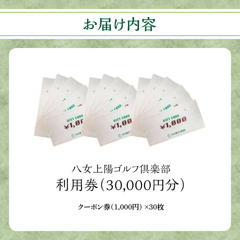 - 八女上陽ゴルフ倶楽部 利用券(30,000円分)【レターパック】 ゴルフ 八女 飲食 宿泊 クーポン 券 福岡県 リフレッシュ 体験 アクティビティ 利用券