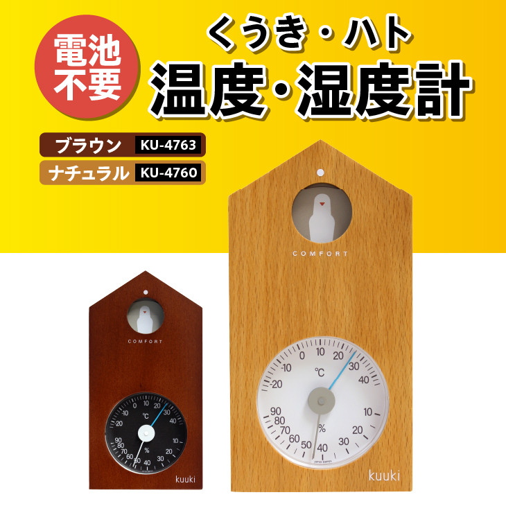 【10月1日より価格改定】くうき・ハト温湿度計 ナチュラル KU-4760 ブラウン KU-4763 温度・湿度計 健康 天気予測 環境 インテリア [AJ024][AJ025]