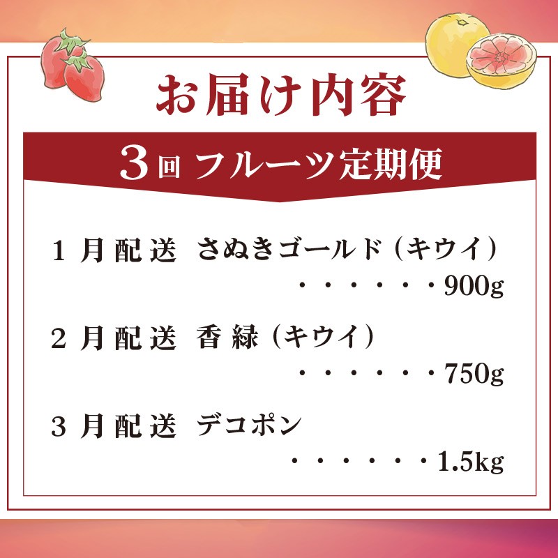 - 旬のフルーツ 定期便 3回 Eコース 果物 フルーツ さぬきゴールド キウイ キウイフルーツ ゴールドキウイ 香緑 グリーンキウイ スイーツ デザート ケーキ ゼリー ジュース ジャム アイス ジェラート フルーツ大福 クレープ ふるさと納税定期便 ふるさと納税フルーツ ギフト 贈答 送料無料 ふるさと納税 香川県 丸亀市