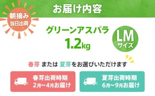 数量限定 アスパラ LMサイズ 1.2kg 選べる 春芽/夏芽 朝採り 朝採れ 直送 グリーンアスパラガス アスパラ BT03 BT07 BT-S0003
