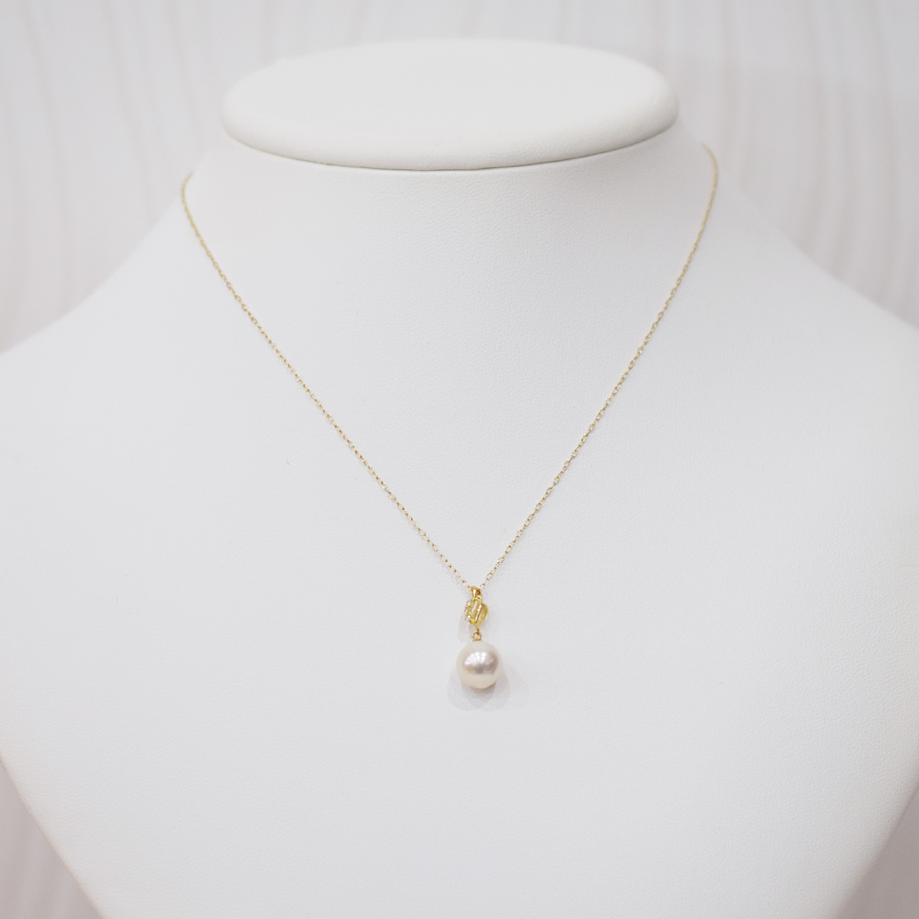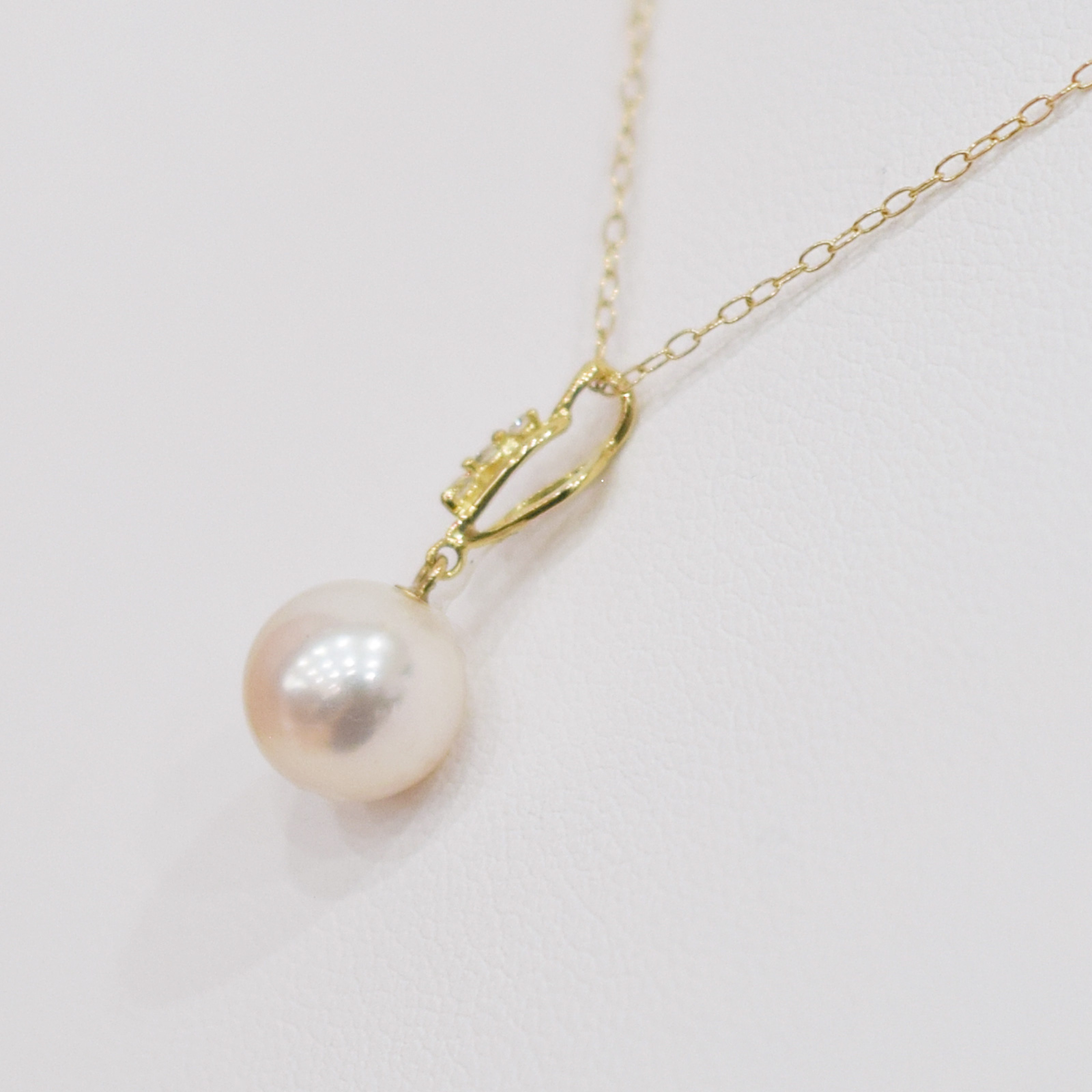 S101-489_あこや真珠 天草 ネックレス ペンダント ダイヤモンド 0.02ct 8mm - 8.5mm ホワイトピンク 真珠 K18 音符