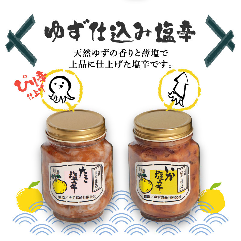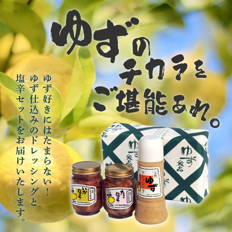 - <ゆず食品>ゆず香セット [ゆず ドレッシング 塩辛 イカ タコ サラダ 鍋 しゃぶしゃぶ 調味料 ごはん おかず おつまみ 豆腐 納豆 ゆずドレッシング 250g ゆず入り塩辛 各200g ゆず香セット ゆず食品 静岡 伊豆 下田]