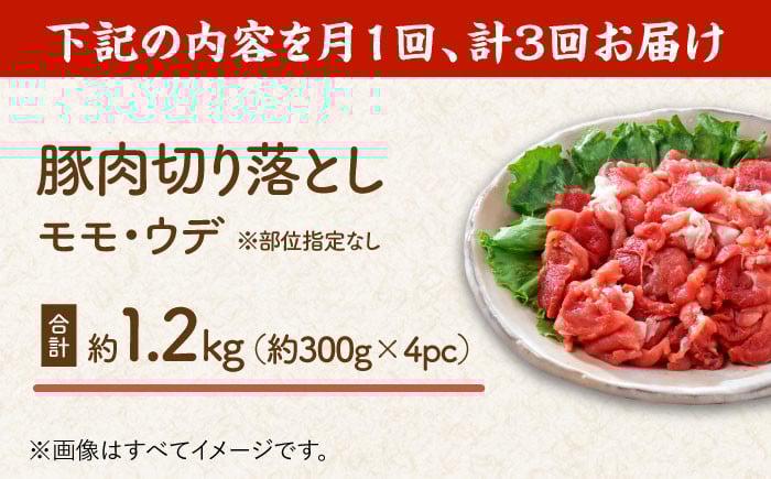【3回定期便】豚肉切り落とし(モモ・ウデ部位指定なし)約1.5kg(約300g×5pc)【吉里精肉】 [ZEW084]