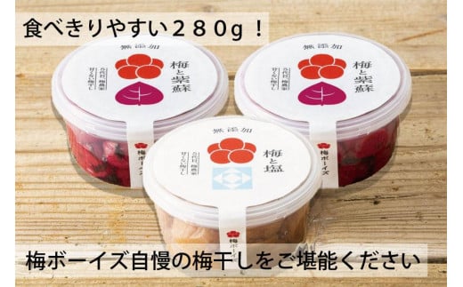 【無添加梅干し】天日塩だけで漬けた梅干し、塩と紫蘇だけで漬けた梅干し、白梅酢 お試しセット / 南高梅 / 梅ボーイズ