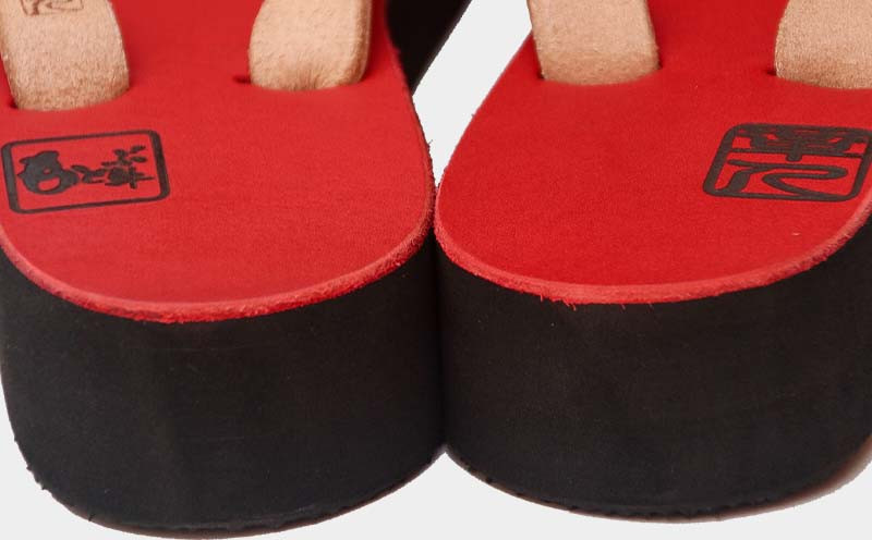 【革人】もとぶ牛 革ぞうりレッド(ミドルヒール・女性専用)